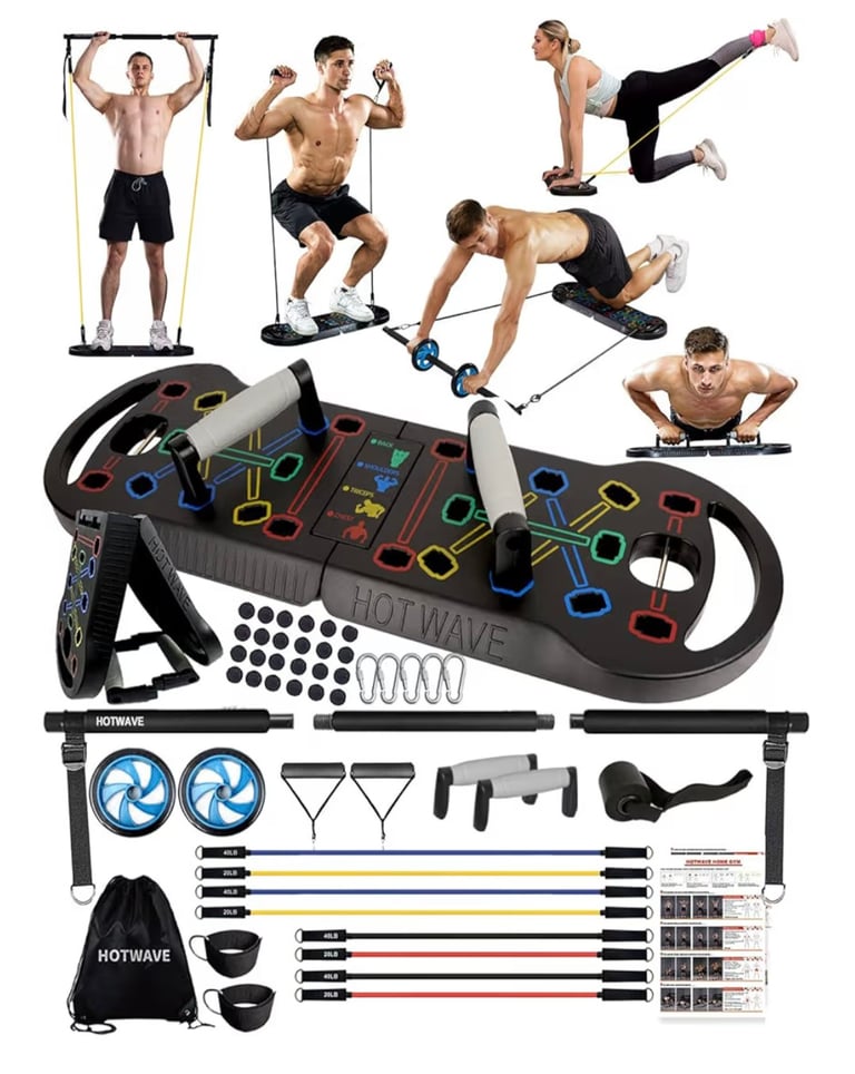 HOTWAVE 20-in-1 Push Up Board Fitness – Portable Foldable Home Gym Push-Up Handles for Professional Strength Training