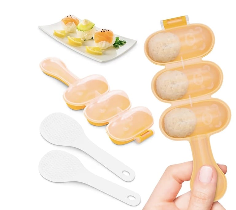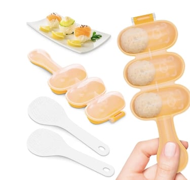 Rice Ball Mold Set β 2 Pack Easy Onigiri & Sushi Maker with Paddle Spoon, Three-Ball Molds for Bento, Snacks & Creative Meal Presentation