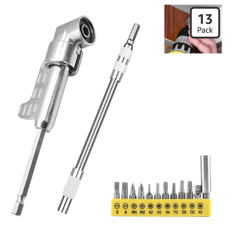 The 105 Degree Right Angle Drill Bit Holder Tool is a practical accessory designed to help you work in tight or hard-to-reach spaces where standard tools may not fit.