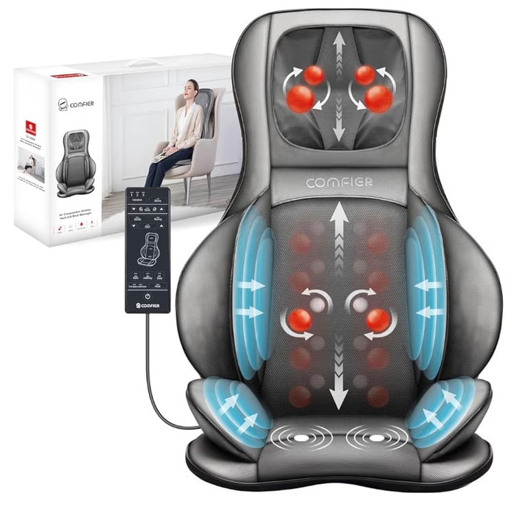 The COMFIER Massage Chair Pad is a practical device that delivers a comfortable massage experience at home or in the office, especially for those dealing with muscle tension from prolonged sitting.