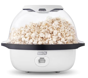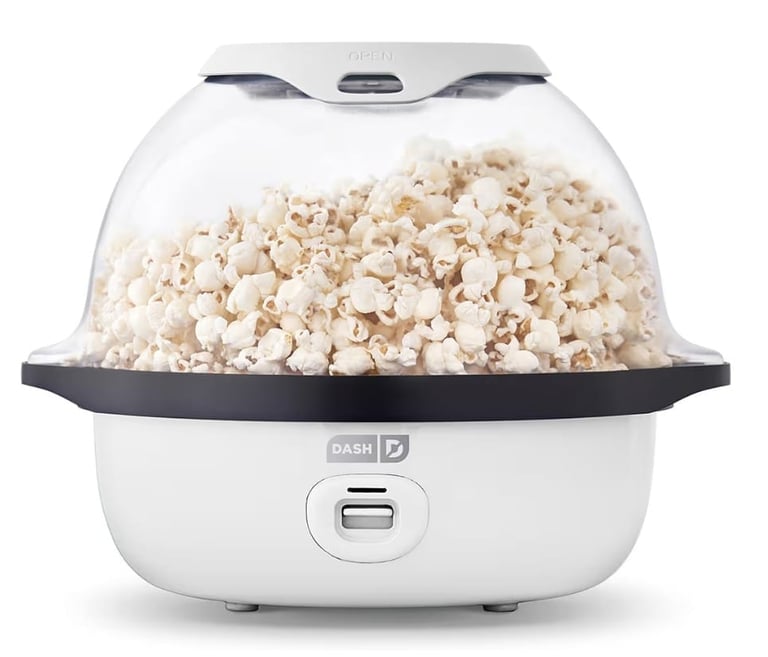 The Dash SmartStore® Stirring Popcorn Maker delivers a true movie-theater experience right at home. Equipped with a built-in stirring bar, it continuously rotates the kernels during popping to ensure even heating and reduce unpopped or burnt pieces.