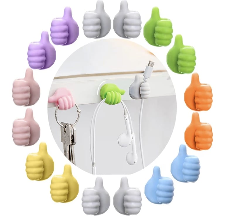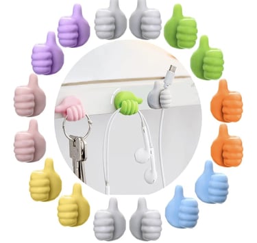 If you're looking for an easy and effective way to organize cables, keys, and small tools at home or in the office, these adhesive silicone thumb hooks provide a practical solution without the need for drilling or complicated installation. Featuring an innovative "tiny thumb" design, they are attractive and simple to use anywhere.