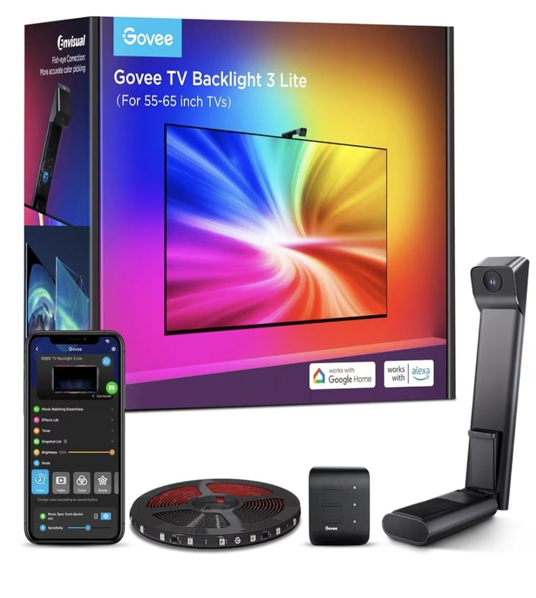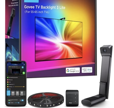 Govee TV Backlight 3 Lite – Smart RGBICW LED Strip with Fish-Eye Correction, Syncs to 55-65 Inch TVs, Voice and App Control