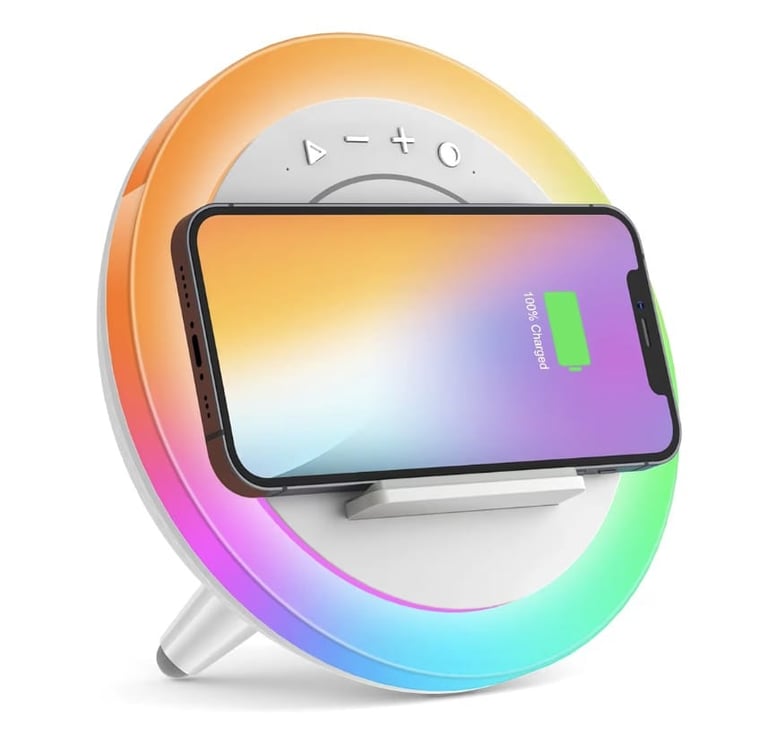 The Bluetooth Speaker Night Light with Wireless Charging is a modern multifunctional device that combines lighting, audio, and charging into one stylish product, ideal for bedrooms or desks.