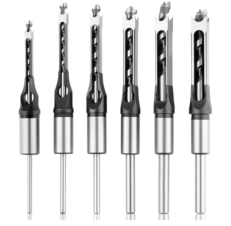 The 6PCS Square Hole Drill Bit Set is perfect for mortise and tenon tasks, designed for woodworking machines to deliver high precision and long-lasting performance.
