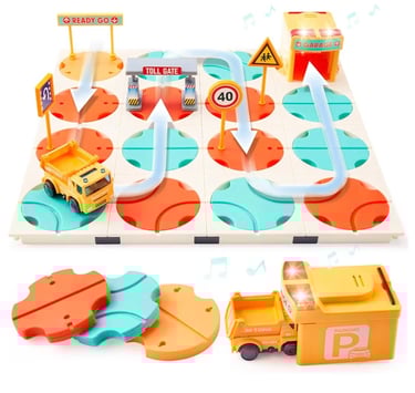 SYNCFUN Kids STEM Board Game – Montessori Construction Puzzle, Logic Road Builder, Ideal Birthday Gift for Ages 3-8