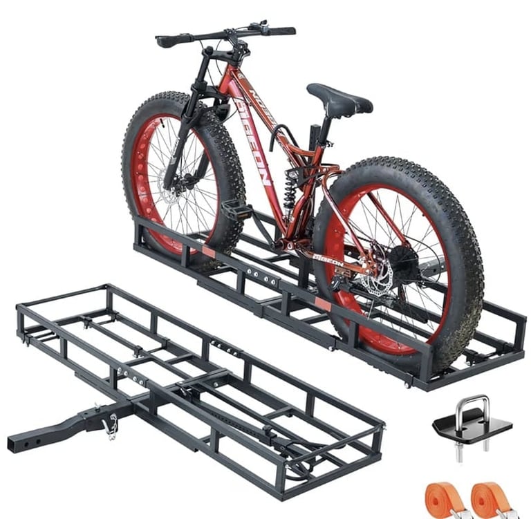 The Hitch-Mount Bike Rack for E-Bikes is the perfect solution for safely transporting large or fat-tire electric bikes. Designed to carry two heavy e-bikes, this rack provides strength and stability, making it ideal for long trips or regular transport between home and riding locations.