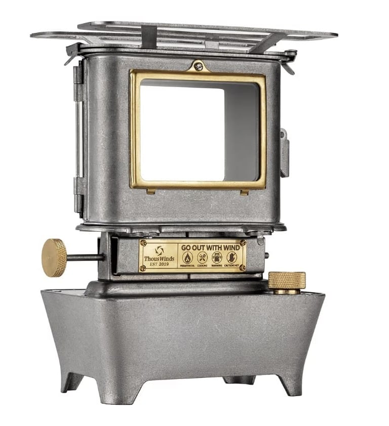 The Thous Winds Camping Oil Lantern combines lighting, cooking, and warming functions in one stylish retro design.