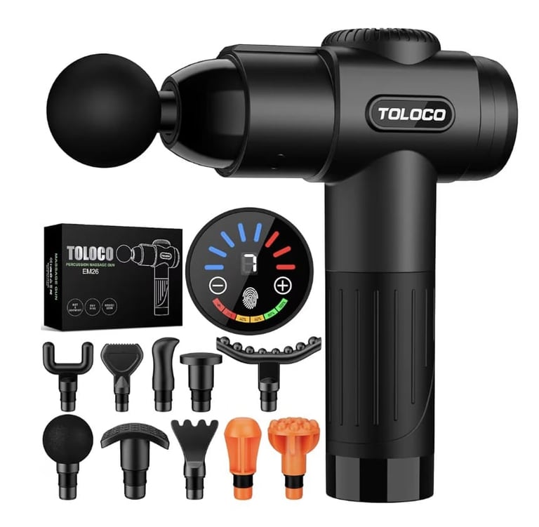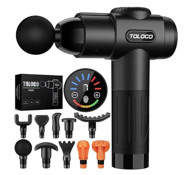TOLOCO Deep Tissue Massage Gun β Percussion Massager for Pain Relief with 10 Massage Heads & Quiet Brushless Motor, Perfect Gift for Athletes