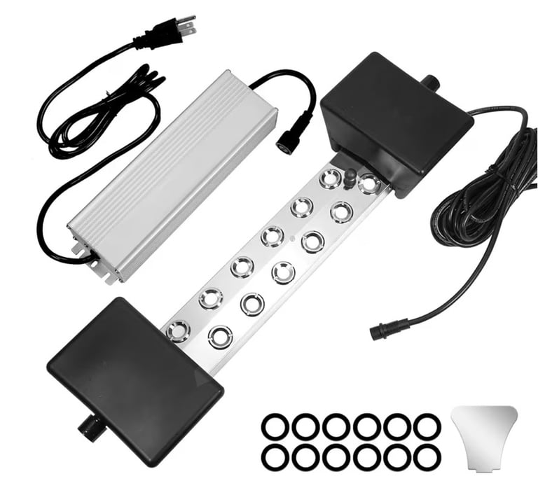 The TEPU 12 Head Ultrasonic Mist Maker is a powerful device designed to create dense and visually appealing mist effects in both indoor and outdoor environments such as ponds, fountains, and decorative setups.