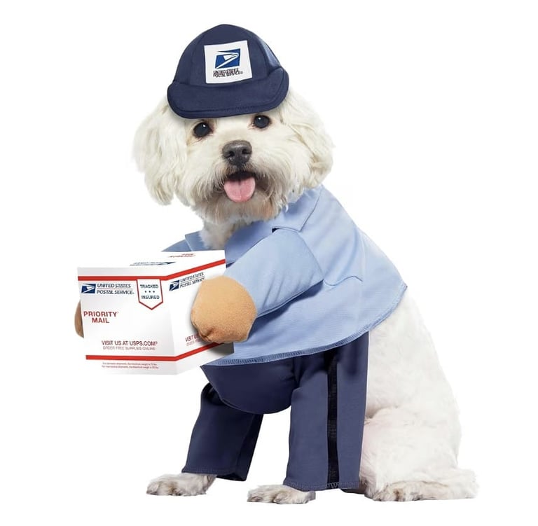 USPS Mail Carrier Pup Dog Costume โ Medium Size, Adorable & Fun Outfit for Halloween & Parties