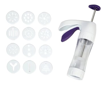 Produce consistent, decorative cookies with just a simple press.