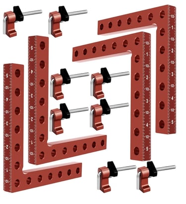 The 5.5 x 5.5 inch design is suitable for assembling cabinets, drawers, and picture frames. The clamp helps improve accuracy during woodworking tasks, making installation and alignment easier for DIY projects and home workshops. This set includes 4 pieces, making it suitable for multiple working uses.